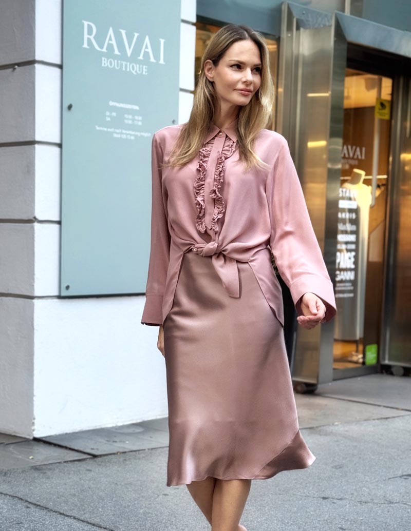 Weiche Seide, fließende Silhouetten und eine Farbe, die garantiert nicht übersehen wird.